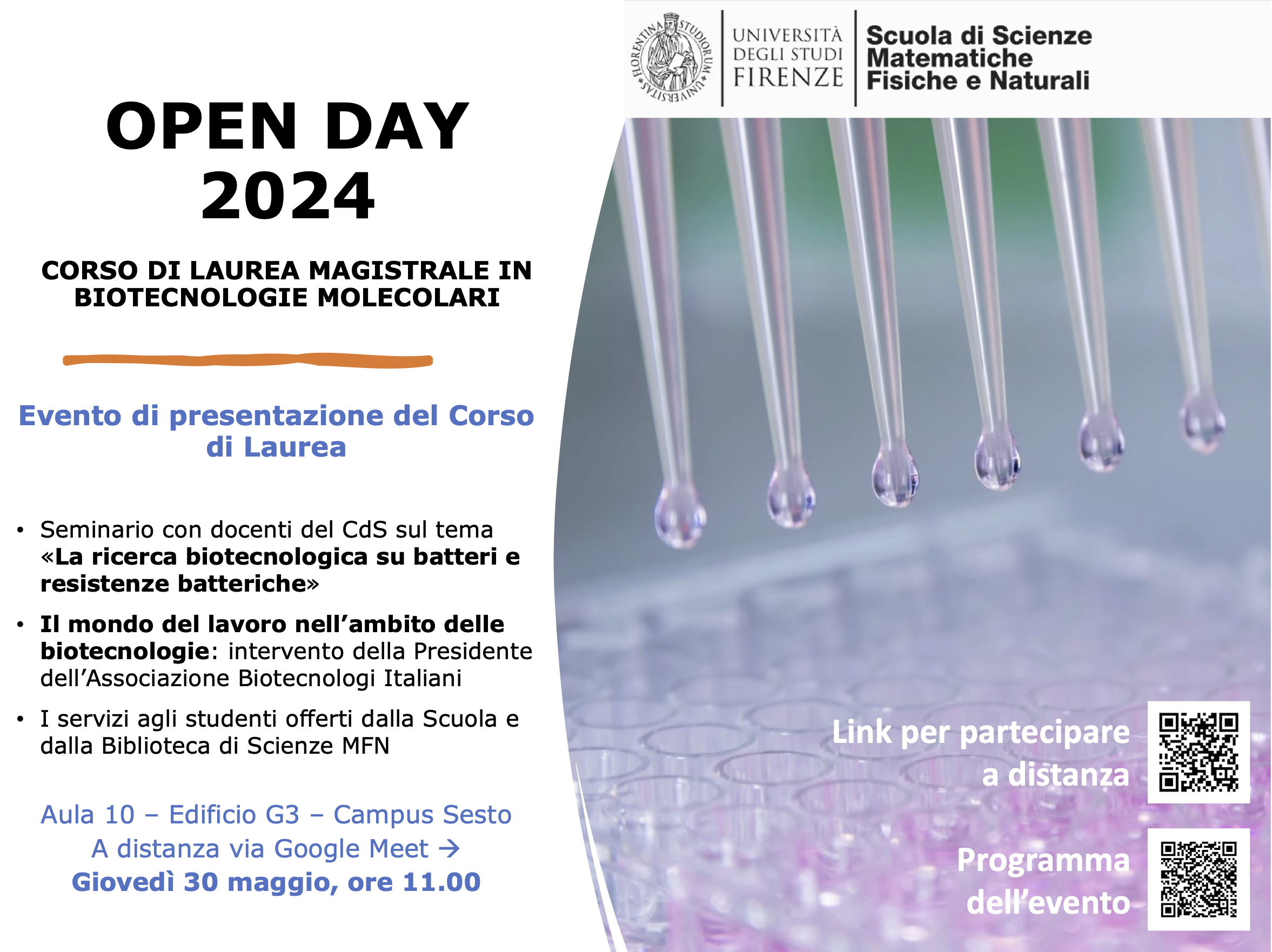 📢 Open Day della Laurea Magistrale in Biotecnologie Molecolari (LM-8) all’Università di Firenze! Domani alle ore 11:00 saremo collegati all’Open